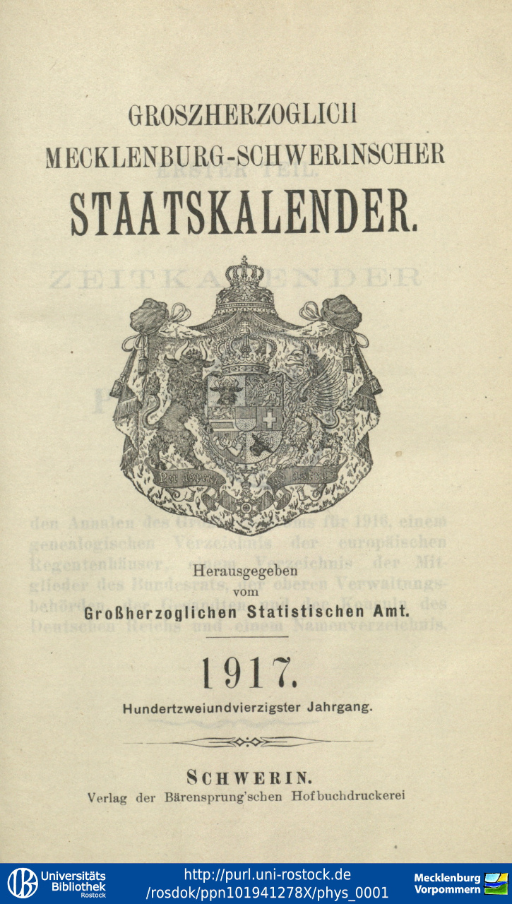 Projekt zur digitalen Erfassung ausgewählter Daten des Mecklenburg-Schwerinschen Staatskalenders