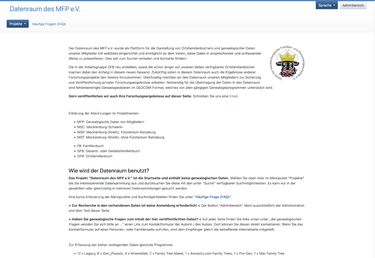 Wir bedanken uns bei Klaus Becker für die Möglichkeit, seine genealogischen Daten im Datenraum des MFP e.V. präsentieren zu können.